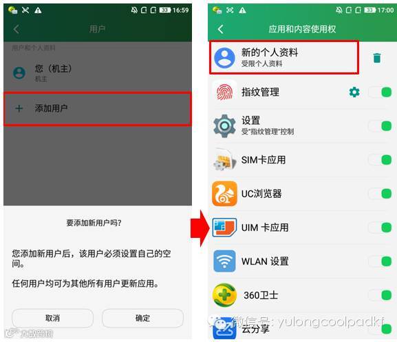 ①点击“新的个人资料”可以自定义名称。修改名称后,可以设置应用的为隐藏/显示。(灰色为隐藏应用,绿色为允许使用)