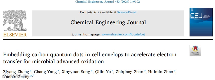“Chemical Engineering Journal∣Embedding carbon quantum dots in cell envelops to accelerate electron transfer for microbial advanced oxidation”