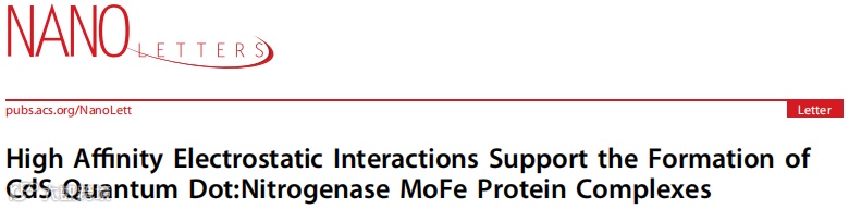 “NANO LETTERS∣高亲和力的静电相互作用,支持量子点:氮酶MoFe蛋白复合物的形成”