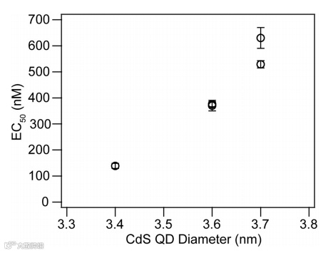 图5. EC50与CdS量子点直径的图,