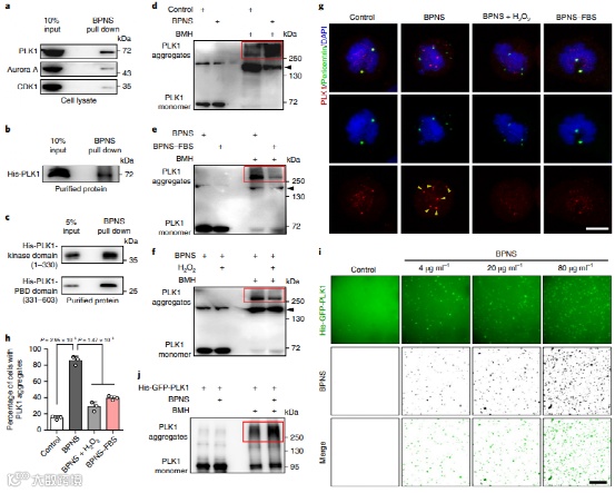 i 、j ,BP处理导致PLK1在体外聚集。