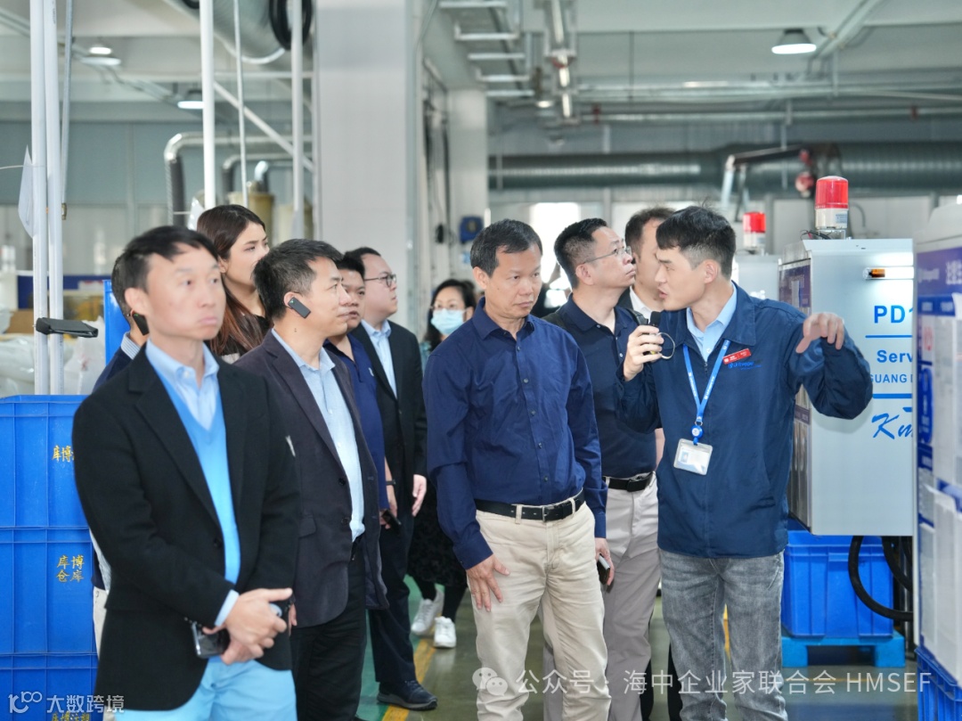 3 月 24 日当天上午,海中企业家联合会一行首先抵达广东库博精密科技集团股份有限公司,拜访了广东省海南商会常务副会长、广东库博精密科技集团股份有限公司董事长潘晟。在潘晟常务副会长的热情接待下,代表团参观了企业展示区和生产工厂,深入了解了库博的生产线以及全球化业务布局。