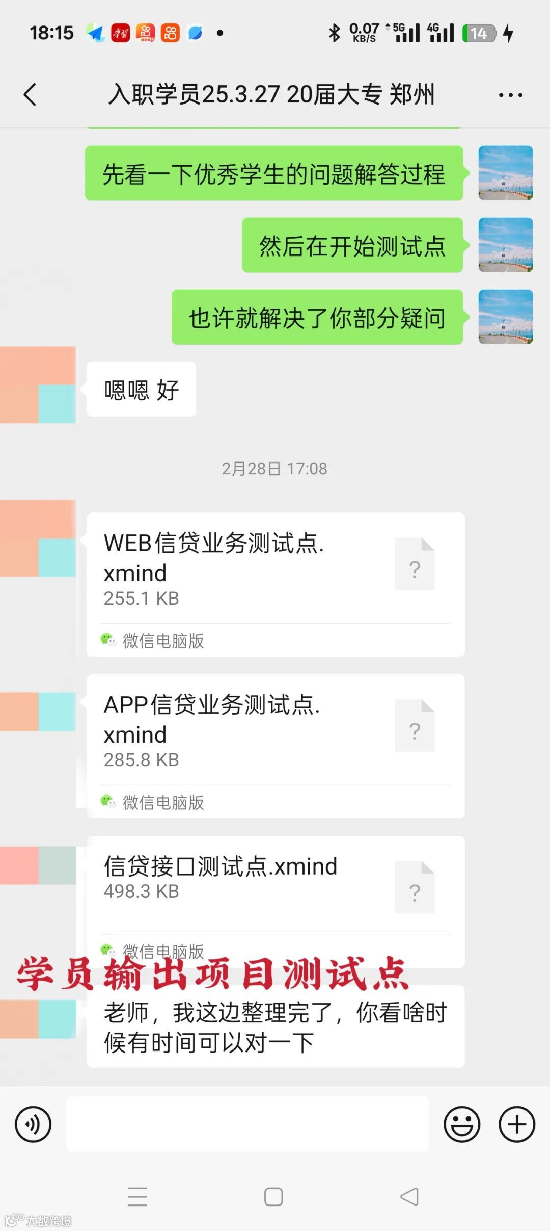 就在邱同学陷入迷茫之际,他了解到我们专注于银行软件测试项目辅导。与老师深入交流后,他得知辅导内容涵盖信贷、网银、银行理财业务、票据系统、银行内部系统等核心项目,且核心主打面试项目会从业务、功能模块、核心接口三个关键维度展开 —— 从业务逻辑梳理,到负责测试的功能模块测试点拆解,再到接口测试场景设计、流程梳理以及核心接口参数细节把控,每一项内容都精准对接企业招聘需求。更让他安心的是,辅导资料会根据市场需求及时更新,确保所学知识的时效性与实用性。基于此,邱同学毫不犹豫地加入了银行项目学习。