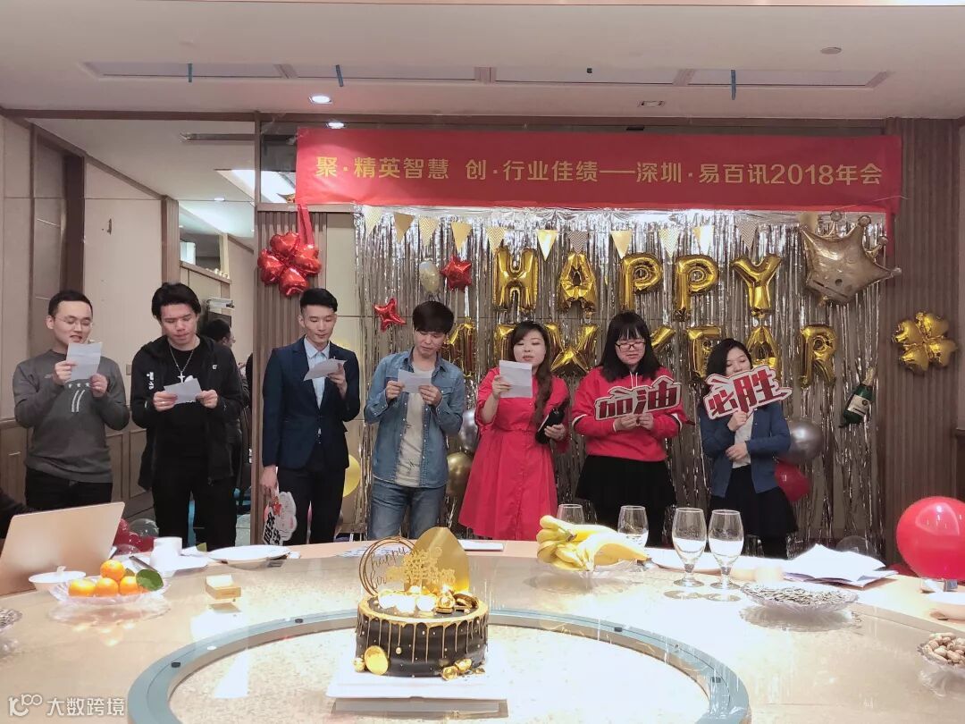 2018年对我们公司来说是很重要的一年,大家的精神让我深感欣慰。互联网行业是一个压力巨大的行业,要想成功的站稳脚跟,就必须比他人付出更多的努力。在高压的环境下,我们的同事每天带着欢乐的笑容,在工作,在战斗,尽心尽力,鞠躬尽瘁,并且毫无怨言的牺牲个人时间为公司做出贡献。我们的领导团队严于律己、以身作则。换来的是易百讯今天在行业中 的地位。其中的酸楚和喜悦更能看出易百讯大家庭的凝聚力!