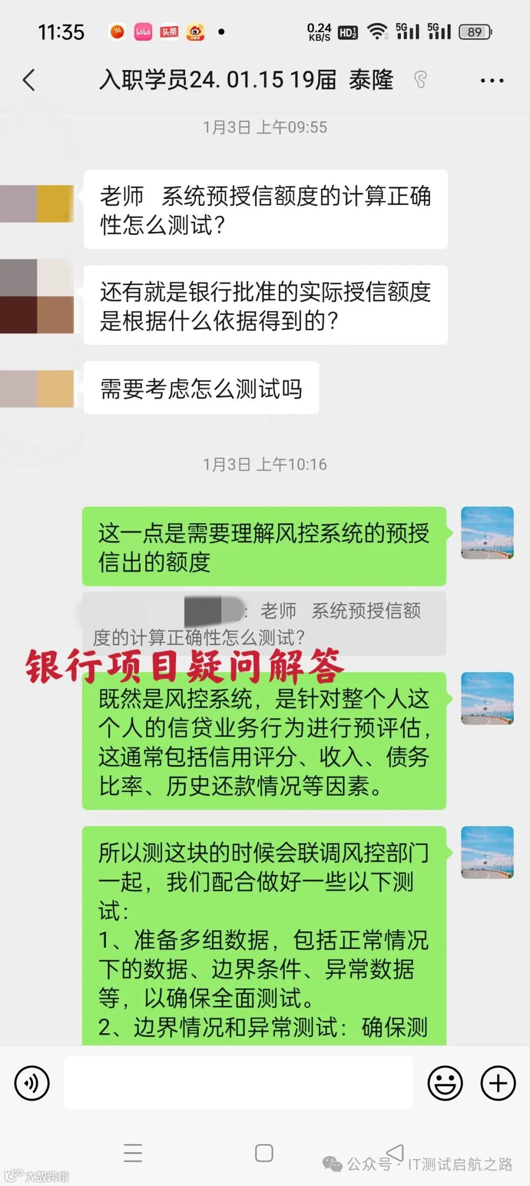 经过一番咨询和了解,小毅同学参加了测试佬鸟老师的银行测试项目的一对一辅导课程。该课程不仅覆盖了软件测试的基础知识,还具体针对银行系统,提供了一系列实战项目经验。其内容包含信贷和网银、银行理财业务、票据系统、银行内部系统等项目,核心主打面试项目涉及业务 、功能模块 、核心接口 ,从业务开始到负责测试的功能模块测试点 ,设计接口部分主要搞懂接口测试场景 ,流程 ,核心接口参数等细节。这对他来说是一个巨大的突破,这样他不仅能将之前软件测试培训中未学到的知识补充,还能获取到专业的银行测试经验。