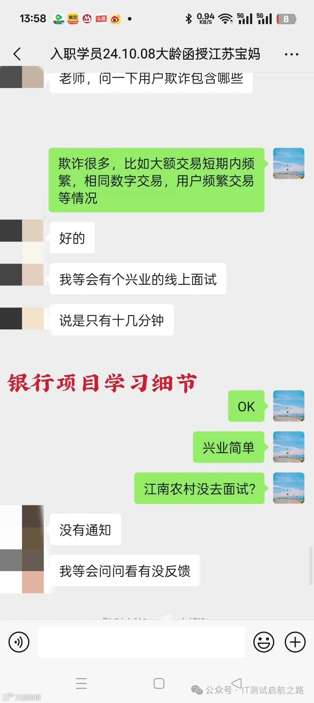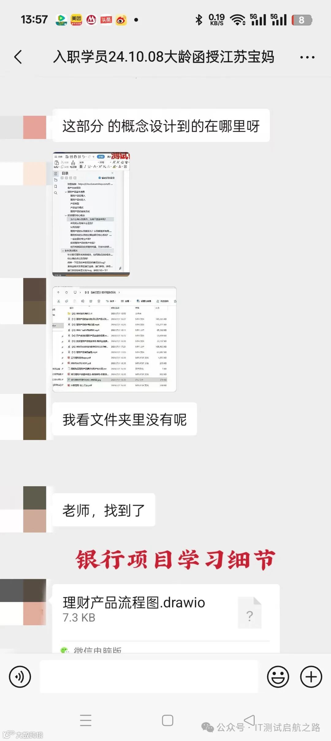 幸运的是,命运的齿轮悄然转动,一次偶然的机会,武同学结识了佬鸟老师。一番促膝长谈,仿若在黑暗中点亮了一盏明灯,老师所构建的银行项目辅导蓝图仿若一座蕴藏无尽智慧的宝库,信贷、网银、银行理财业务、票据系统、银行内部系统等丰富多元的知识板块一应俱全,面试项目更是精细入微,从业务底层逻辑的剖析,到功能模块精准测试的要点,再到接口测试各个关键环节的细节,都毫无保留地呈现。这不仅是知识的传递,更是为她量身定制的圆梦指南,武同学眼中重燃希望之火,果断加入学习行列。