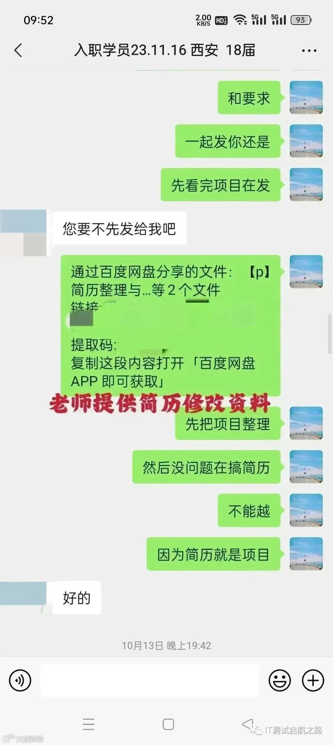 此外,我们的老师还会通过腾讯会议一对一答疑和对齐银行项目,并帮助周同学优化简历和进行模拟面试,针对性地解析可能出现的面试问题。通过这些专业银行项目学习,周同学在面试中展现出了卓越的专业技能和对银行测试项目的深入理解。