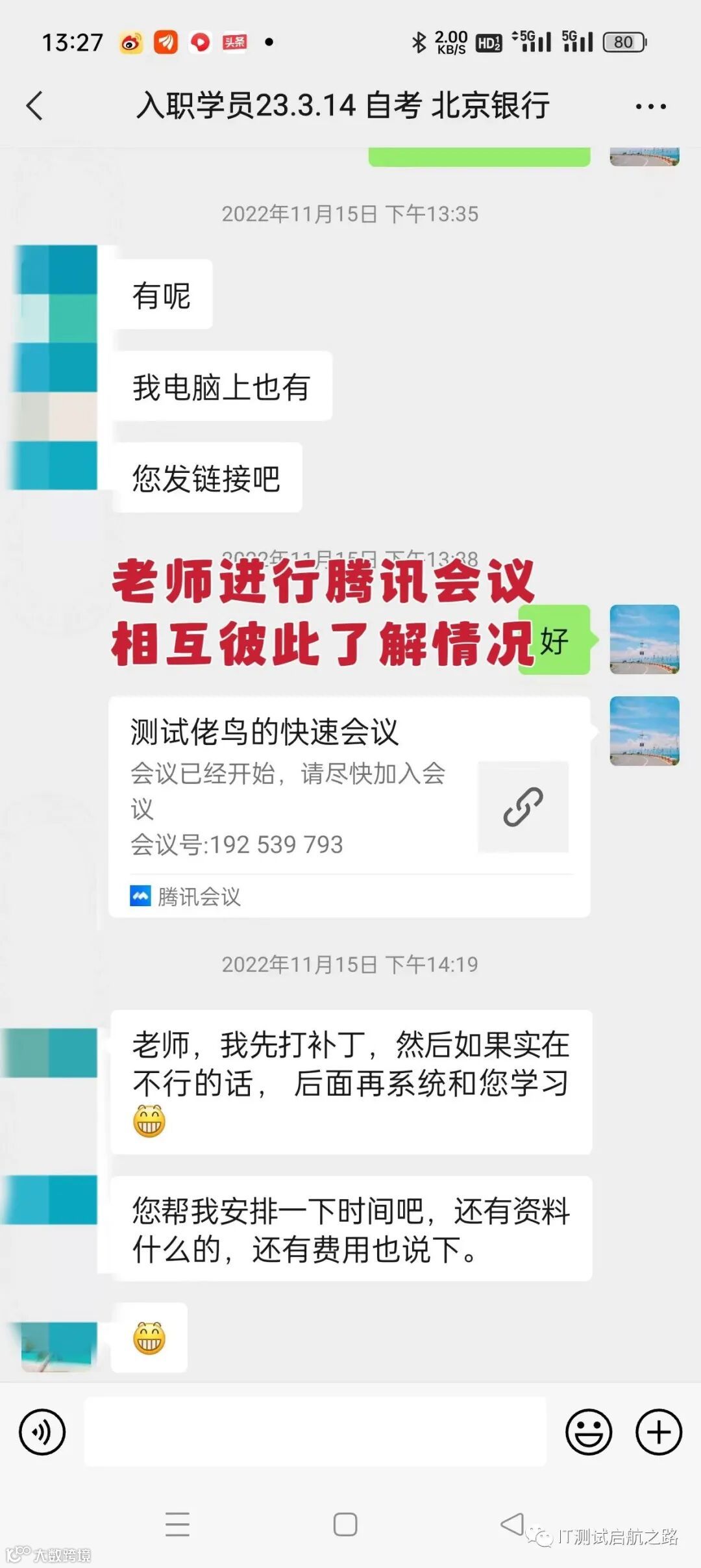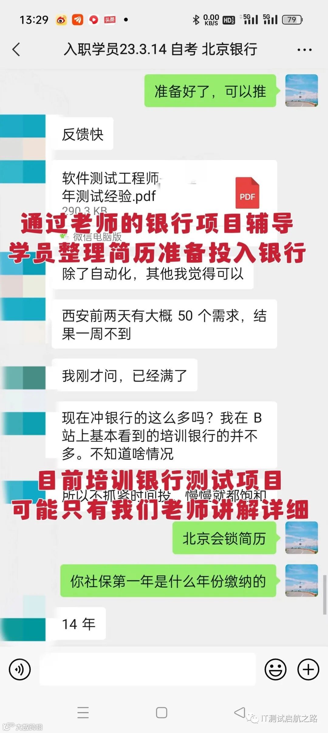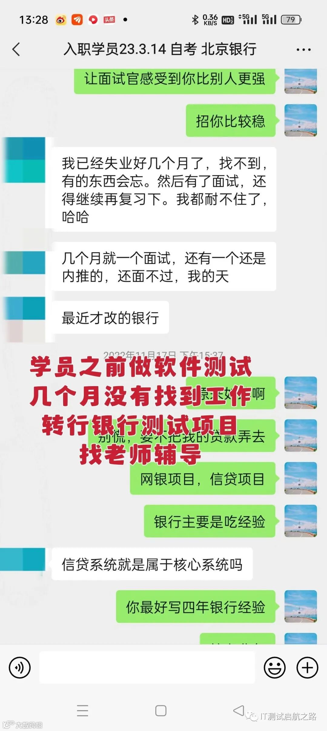 雍女士是一名14届金融专业的自考本科毕业生。她在金融行业工作了几年后,对IT行业产生了浓厚的兴趣,于是进入培训班培训软件测试,由于培训班培训测试内容不够全面,导致后期她一直很难找到工作,她决定转行银行测试项目。然而,这个决定让她面临着巨大的挑战。幸运的是,她遇到了我们的银行软件测试辅导课程。