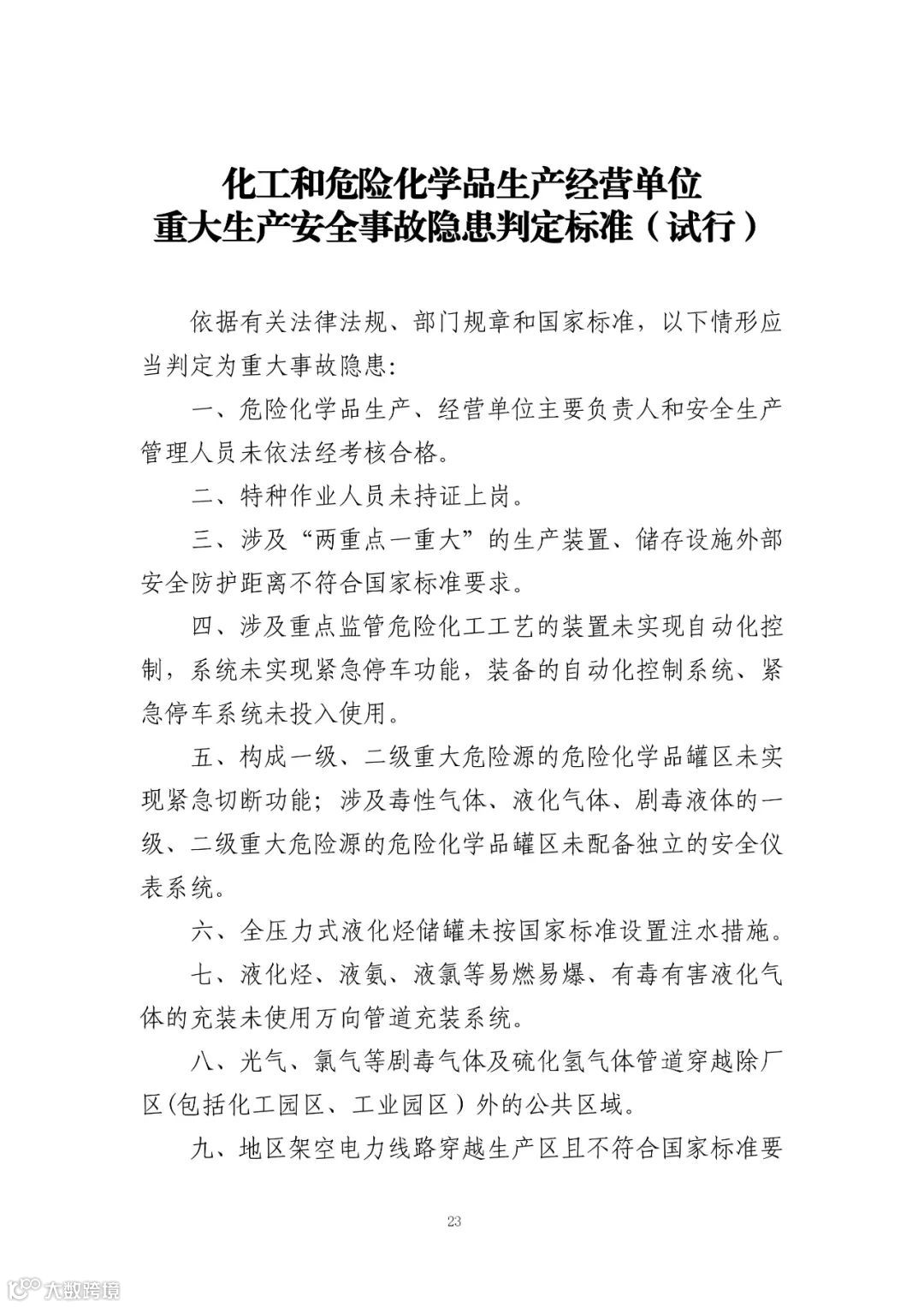 3. 化工和危险化学品生产经营单位重大生产安全事故隐患判定标准(试行)