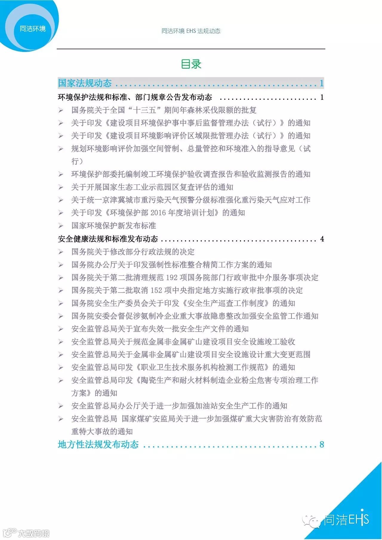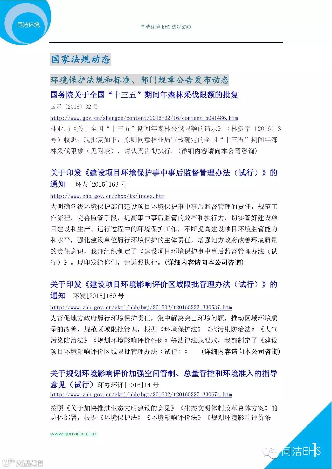 同洁环境EHS法规动态2016年第02期(总第37期)