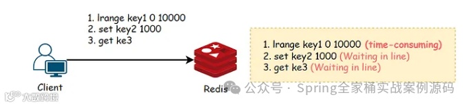 Redis采用单线程模型处理请求。除了上面所说的大key在处理请求时会出现排队情况外,执行复杂度过高的命令时也会出现这种情况。