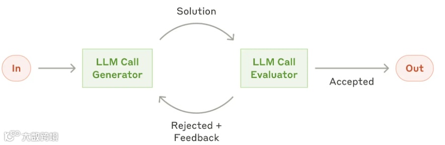 在评估器-优化器工作流中,一个大型语言模型(LLM)调用生成响应,而另一个模型则在循环中提供评估和反馈。如下图所示: