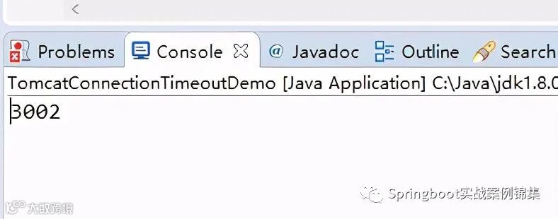 public class TomcatConnectionTimeoutDemo {public static void main(String[] args) throws Exception {Socket socket = new Socket("127.0.0.1", 8081) ;long start = System.currentTimeMillis() ;InputStream is = socket.getInputStream() ;is.read() ;System.out.println(System.currentTimeMillis() - start ) ;}}