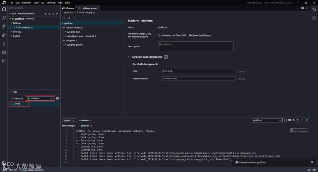 配置完BSP后,需要对Platform组件进行编译,编译完成后才可进行应用组件的创建。