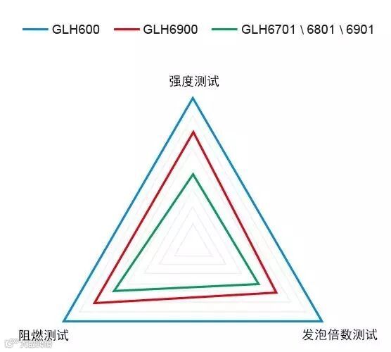 从下图可以看出,阻燃型(GLH600)、门窗专用型(GLH6900)、通用型(GLH6701、6801、6901)产品性能之间的对比: