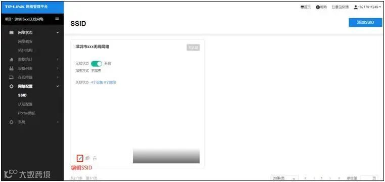 点击“SSID”进入网络配置,编辑需要认证的SSID: