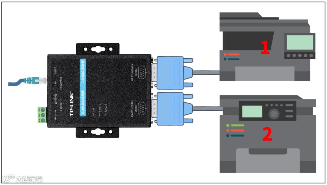 TL-DU2002工业级和TL-DU3002工业级的典型应用拓扑如下图所示,设备支持双串口独立工作,两个串口均可连接机床、工控机或PLC等设备,通过有线的以太网连接上位机,接入IP网络。