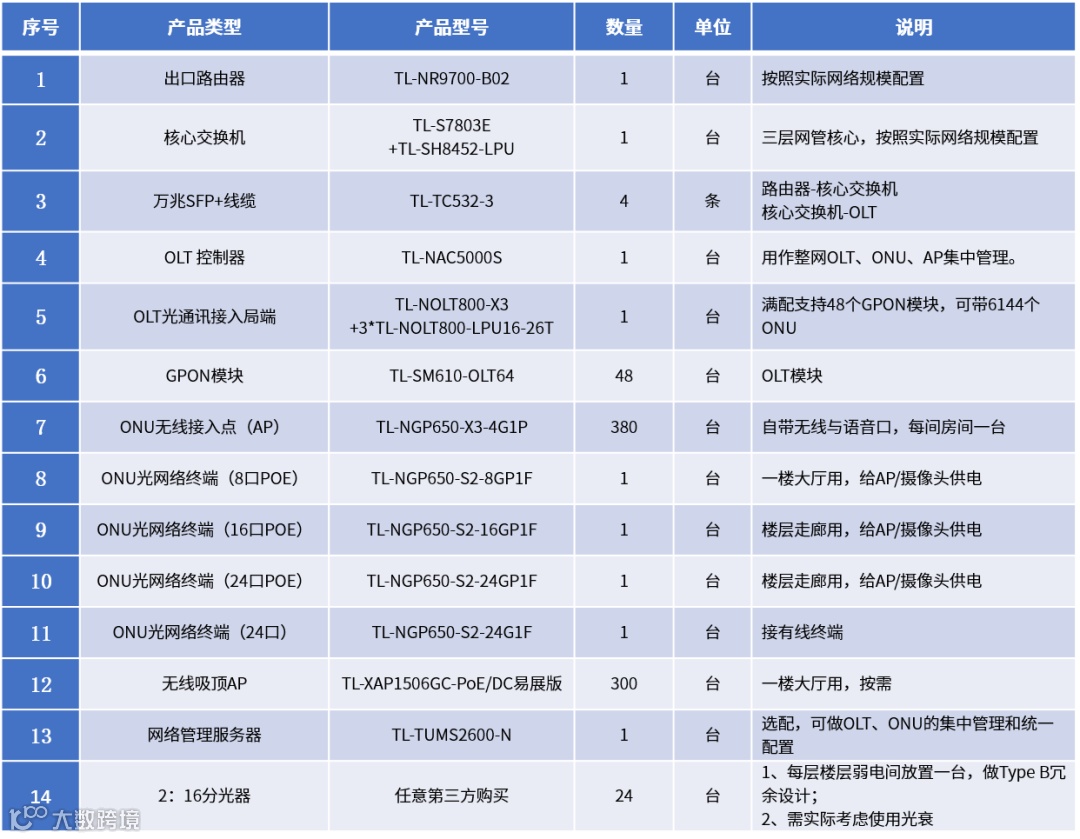 这里为大家总结了一千终端的中小型酒店场景、一万终端连接的校园场景下的方案推荐: