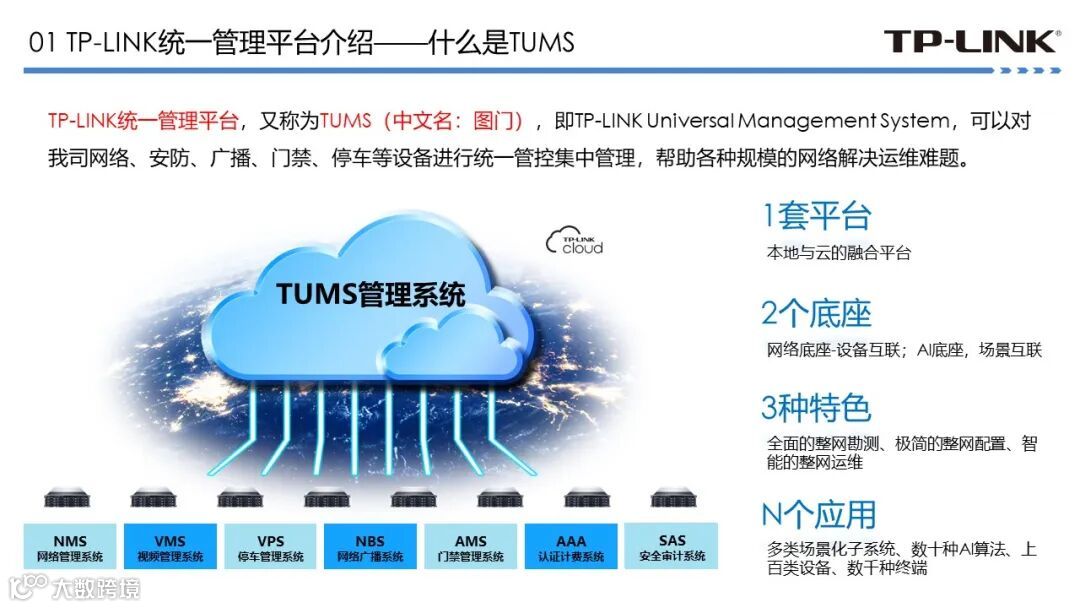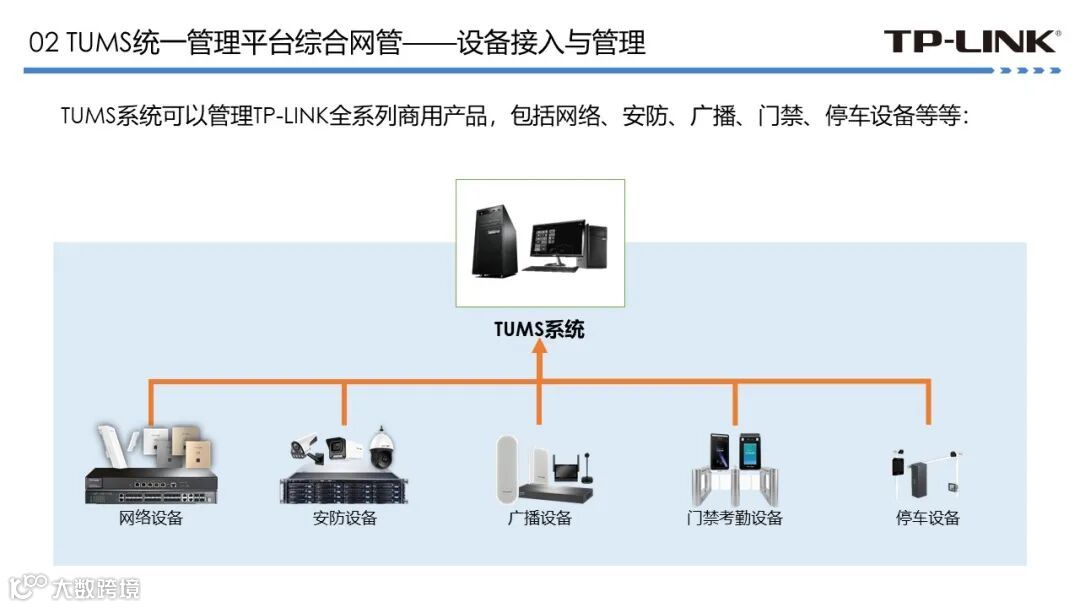 TP-LINK统一管理平台(又称TUMS,中文名:图门)来了!它可以对我司网络、安防、广播、门禁、停车等设备进行统一集中管控管理,帮助各种规模的网络解决运维难题,接下来和小商一起看看TP-LINK综合网管与运维解决方案吧!