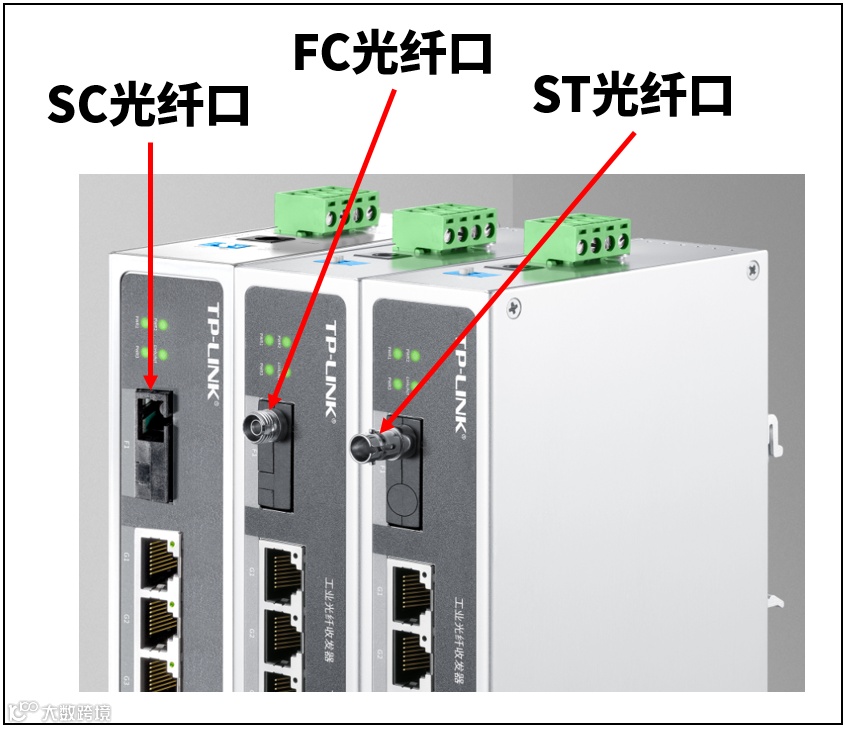 除了常规的SC光纤口,工业光纤收发器还支持了FC(圆形带螺纹金属接口)、ST(圆形卡接式金属接口)等接口类型,如下图所示,相对而言,FC、ST口更加牢靠。