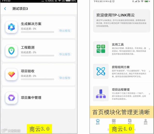 商云APP 4.0完美的将“网络百宝箱”中的工具移植过来了,无线类、工程类、运维类都能在APP上使用,手机无需联网即可使用,非常方便。