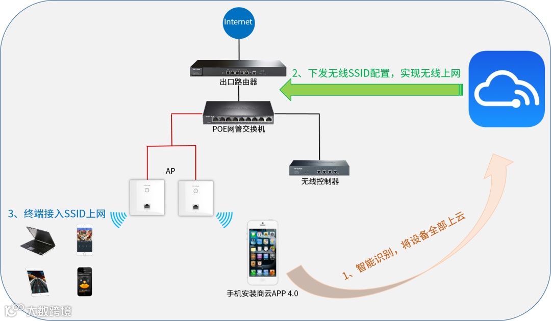 作为商云APP 4.0版本新增的最特色的一个功能“智能开局”。在项目开局时,所有设备都处于出厂状态,APP可以将网络中所有联网的TP-LINK设备“一键上云”!只需一个手机和一个APP便可智能识别出网络中的设备配置上云,简单高效,无需再使用原始的逐一手动添加设备的方式。