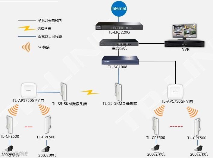 【3】 视频监控设备较分散,需满足较大范围内多个视频监控设备同时接入的需求;