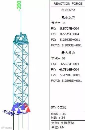 支撑胎架按集中荷载200KN进行考虑,模拟后,由应力云图得到支撑胎架加载后最大应力为70.85MPa,小于Q235B钢材屈服强度;最大应力比为0.3;最大位移量3.65mm。满足规范和设计要求。