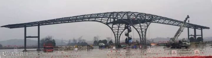 北卡口造型复杂并要求一个月内完成主体结构施工,工期压力大;结构形式为双曲拱形网壳结构,国内罕见,部分杆件须双向弯曲,加工难度大;网壳采用相贯线焊接节点,对施工要求精度高,现场安装难度大。