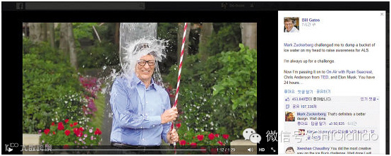 微软联合创始人,曾经的全球首富比尔·盖茨为了帮肌萎缩性脊髓侧索硬化症患者募捐,让一桶冰水倒在自己头上。之前微软CEO纳德拉、“脸书”创始人马克·扎克伯格、苹果CEO蒂姆·库克等都参加了这个活动。