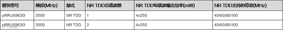 在5G RAN3.1版本规划中,将发布全新平台硬件,提高pRRU功率规格,能够在不减少发送通道数量的前提下实现4*250mW的射频输出,如下表所示pRRU5963G规格: