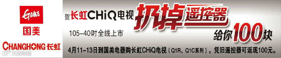 不要不相信!!4月11-13日,前来国美电器长虹专柜免费体验就送礼物,购机返现100元,还送PAD、优酷观影包等礼品!