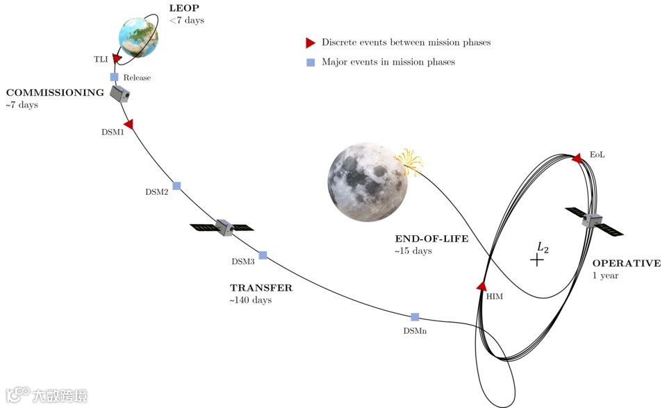 - 演示立方体卫星在月球环境中的部署和自主运行,包括导航和轨迹控制方面。