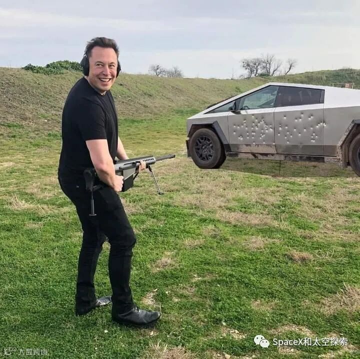 今天一辆满身弹孔的CyberTruck的照片在网上传播,Elon Musk解释说他朝车上打空了一个冲锋枪的弹夹,没有一颗子弹穿透车身。