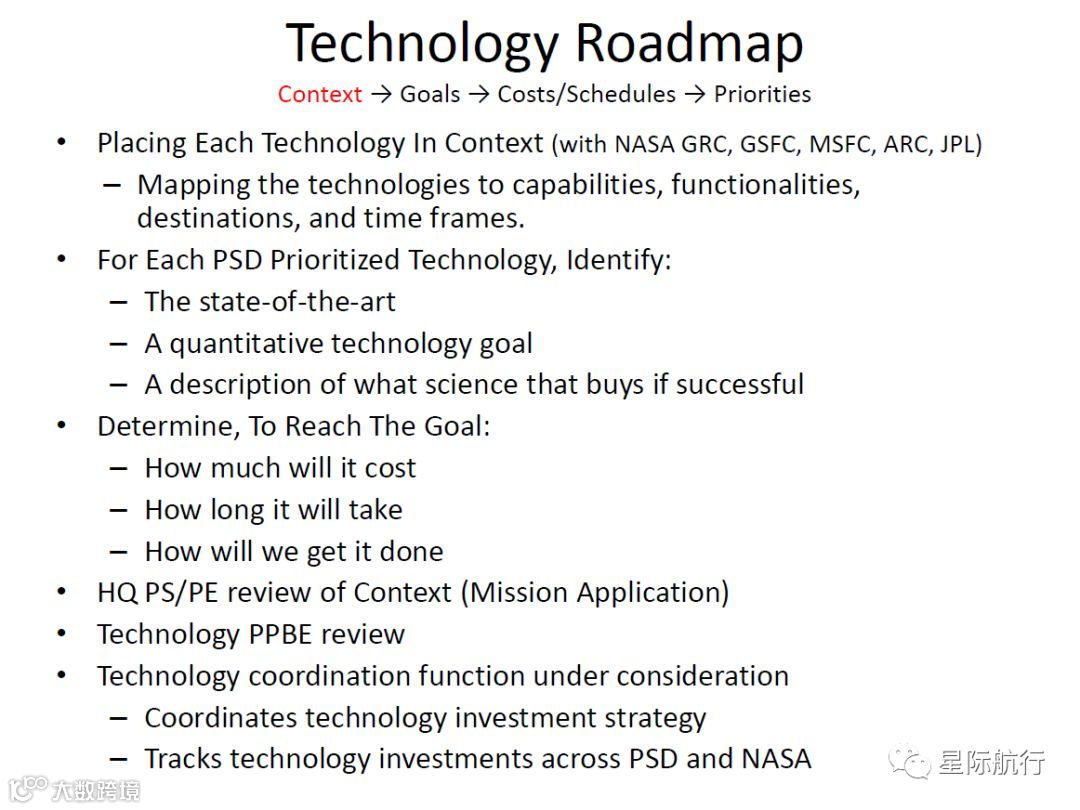 把每项技术都放在任务背景中考虑(和NASA的GRC、GSFC、MSFC、ARC和JPL)