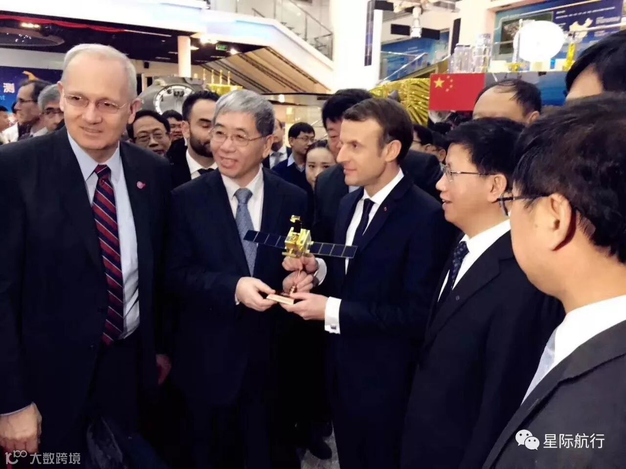 2018年1月10日上午,法国总统马克龙到访中国空间技术研究院,与中国国家国防科技工业局副局长吴艳华一同看望了中法海洋卫星(CFOSAT)研制团队代表。中法海洋卫星应用的主要目标是在全球范围内观测海洋表面的风浪,获取近实时海况信息,为海表面风、海浪预报提供实际观测数据。