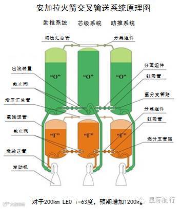 作为Angara火箭后续性能改进规划的一部分,俄罗斯赫鲁尼切夫航天中心计划应用推进剂交叉输送技术,以提高A3、A5和A7型火箭的性能。推进剂由捆绑的助推向芯级供应,这样可以在助推分离时使芯级仍保持有90%~100%推进剂。从其提供的交叉输送原理图上,可以看出,其采用的是贮箱之间的推进剂相互输送策略,似乎和所描述的Falcon9重型以及波音新一代可重复使用运载器采用的管路上相互输送还是有所不同。