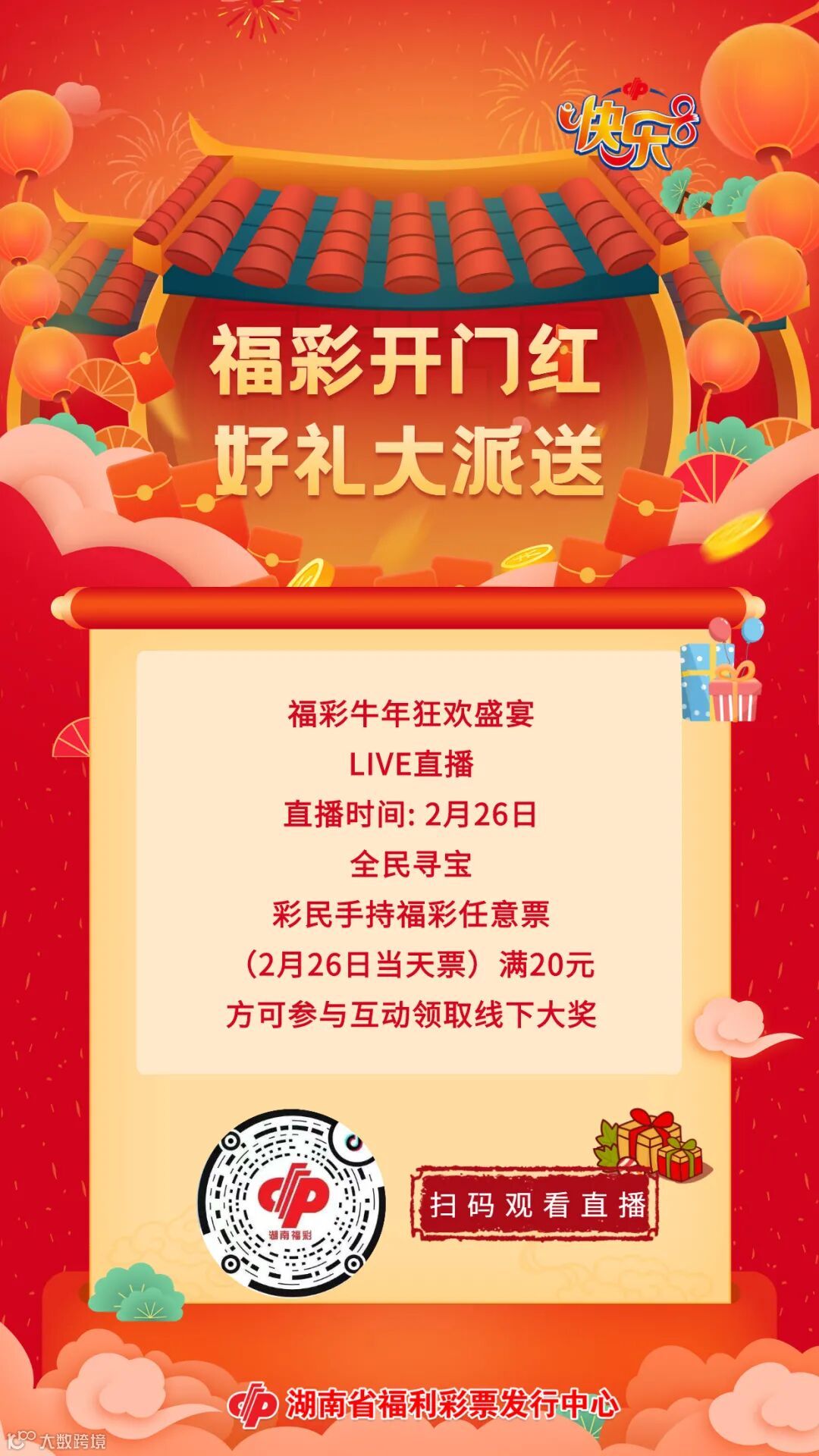 同时,必须手持福彩任意票(2月26日当天票),满20元方可参与互动领取线下大奖。