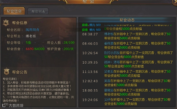 帮会:能够让玩家聚集到一起,并且可以参加帮派活动、沙城争霸,获得更多资源。