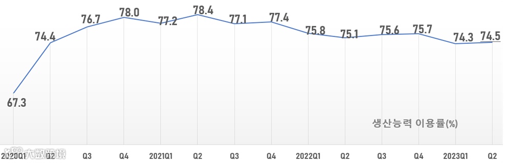 ■ 2023년 2분기 中 공업 생산능력 이용률 74.5% 기록 (7.17 國家統計局)