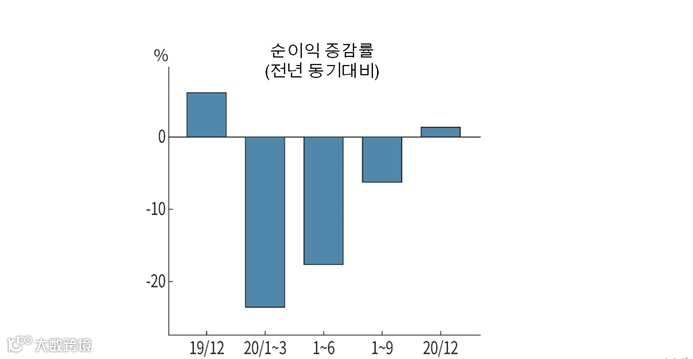 < 중국 상장사 순이익 증감률 추이 >