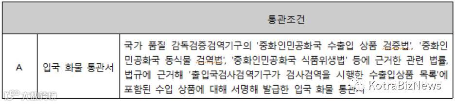 ㅇ 통관조건