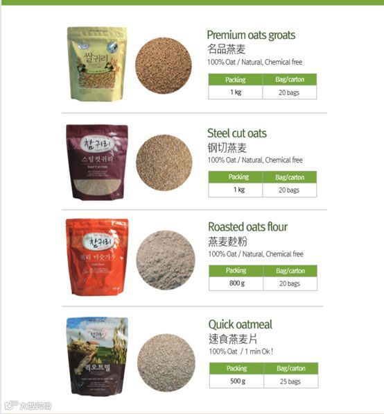 产品:燕麦减肥食品(Oats + Diet)、燕麦营养粥(Oatmeal porridge for weight loss)、燕麦炒粉、燕麦片等。