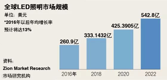 全球市场研究机构Zion Market Research预计称,全球LED市场将从2016年的260.9亿美元(约合29万亿韩元)增长到2022年的542.8亿美元(约合60万亿韩元)。明年韩国国内LED市场规模(韩国光产业振兴会预测)预计将达到10万亿韩元以上。因此,未能先人一步抢占市场的韩国企业已经纷纷开始开发这一领域的高端功能、高附加价值技术。三星电子去年领先世界在美国和中国推出了没有投影仪的“LED影院”,上月还推出了使用边长100微米(100万分之1米)以下LED光源制作的微型LED电视机“The Wall”,LG Innotek正着力开发应用紫外线LED技术的医疗和生物产品。