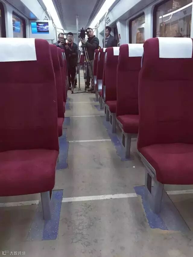 Duang!来看磁浮车厢内萌萌哒座椅。座位的设置与高铁车厢基本一致,大小等同于二等高铁座位,由于列车两头都有司机驾驶室,因此座位也有双向的设置,但与高铁不同的是,没有座位号,座位不能自由旋转。每列磁浮车一共有3节车厢,每一节有24个座位,供人站立的空间比较大,最大载客量达到363人。