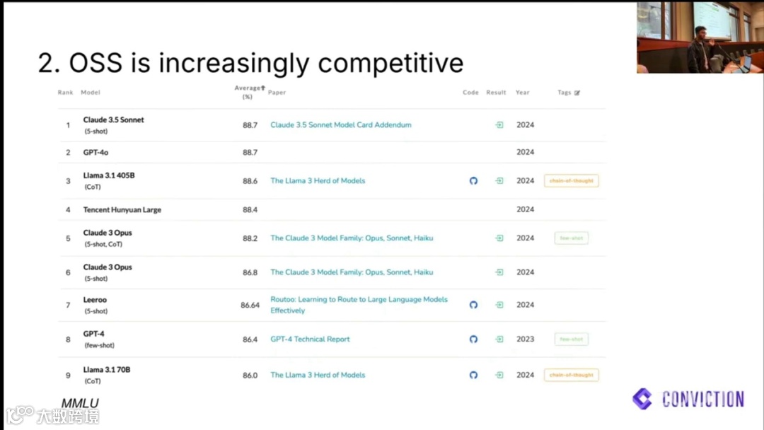 在某些领域,基础模型公司拥有更多的数据或针对特定用例的训练专业知识。然而,开源模型正变得越来越有效,这一趋势在各项评估中都得到了验证。