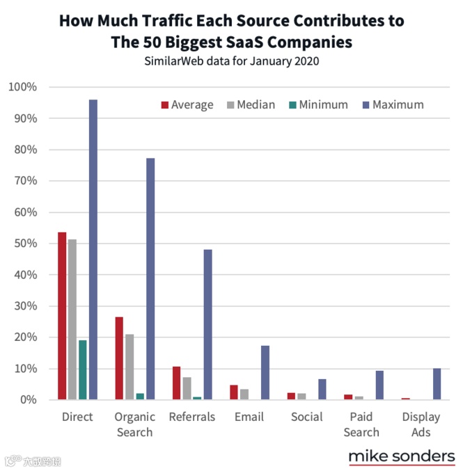 数据显示,每个SaaS初创公司都应该培养以下几种流量渠道: