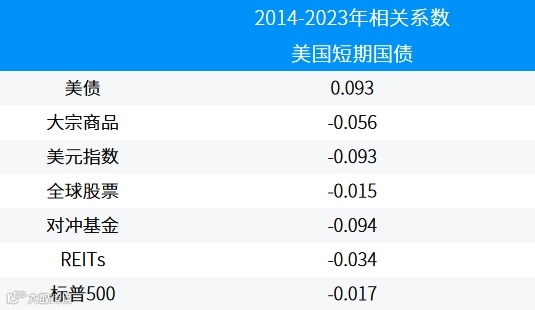 美国短期国债与其他主要大类资产相关性极低,是较为理想的多元化标的