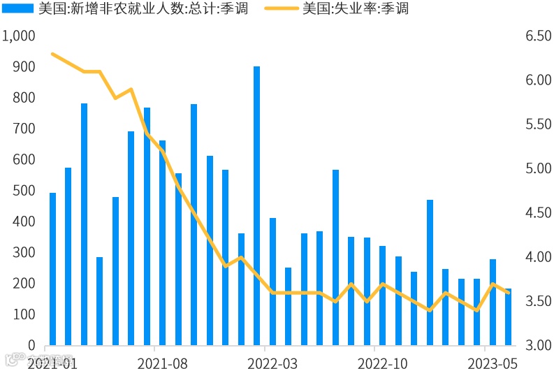 数据来源:万得 统计周期:2013.01-2023.07,美国非农就业与失业率数据截止日期为2023年6月。