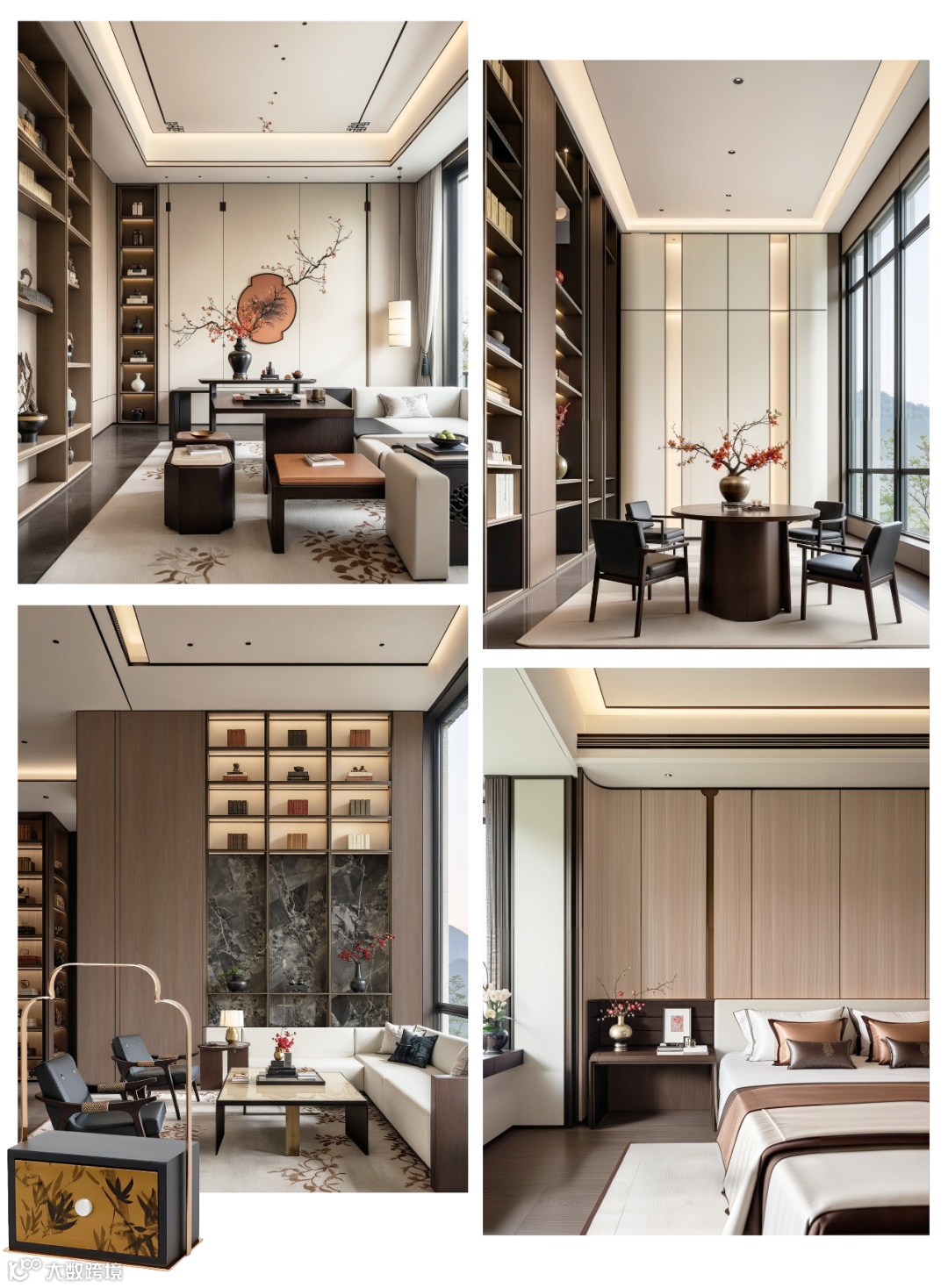 现代与传统经典的交融。从宋代山水画中汲取灵感,将自然景观的写意表现与室内设计相结合,创造出既有古典韵味又符合现代审美的空间。